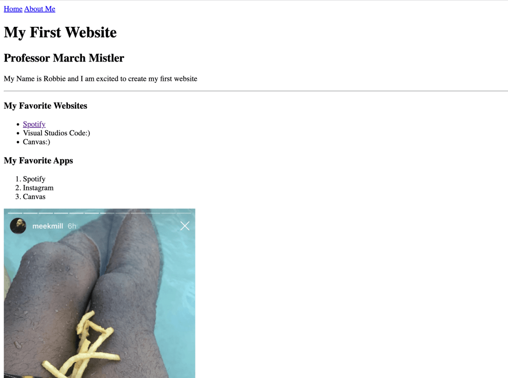 My first website was very basic and included very little CSS/Styling. I learned a lot about the basics of coding.