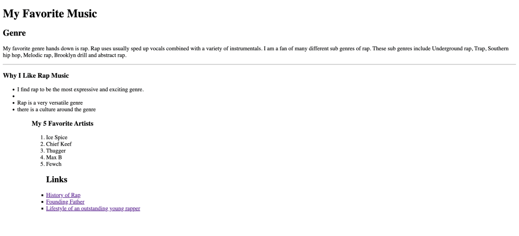 My second website was slightly more advanced with the use of links and indentation.